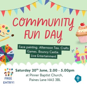 You are also invited to our Community Fun Day on Saturday 20th June from 2 – 5pm at PBC Paines Lane. Join us for face painting, games, crafts, a bouncy castle and live music, plus lots of tasty cakes! Entry and all activities are FREE.