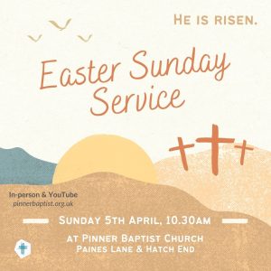 Easter SundaySunday 5th April, 10:30am at PBC Paines Lane & PBC Hatch EndLIVE STREAM (YOUTUBE)A celebration family service with Holy Communion and Baptisms.
