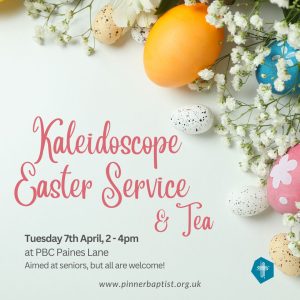 Kaleidoscope Easter Service & TeaTuesday 7th April, 2:00pm at PBC Paines LaneFollowed by tea and refreshments. Aimed at seniors, but all are welcome!